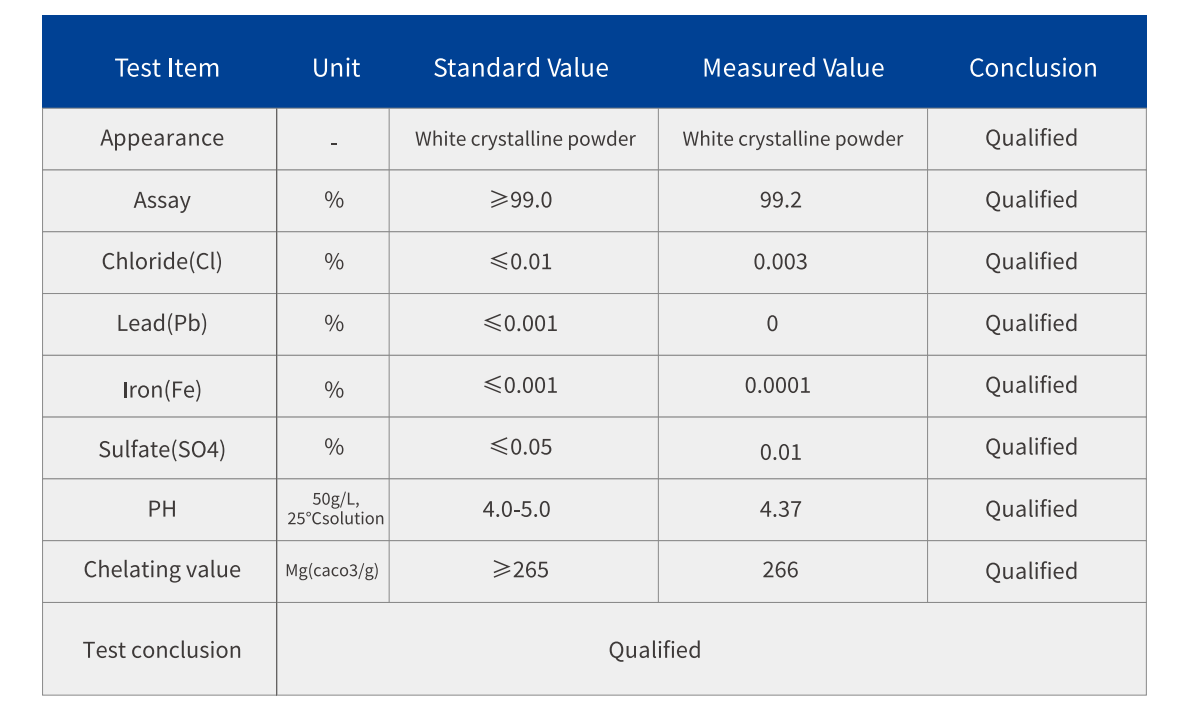 Among the salts of ethylenediaminetetraacetic acid, the disodium salt is the most important. It is an important complexing agent. It is used in chemical copper plating, gold plating, lead-tin alloy plating, electrochemical polishing of steel parts, and solutions before silver plating of copper parts. It can also be replaced by EDTA-Na. It is also used in detergents, liquid soaps, shampoos, agricultural chemical sprays, color-sensitive material rinsing processing bleaching fixing solutions, water purifiers, pH regulators, anti-flocculants, etc. In the reduction initiation system used in the polymerization of styrene-butadiene rubber, disodium EDTA serves as a component of the active agent, mainly used for complexing iron ions and controlling the reaction speed of polymerization.